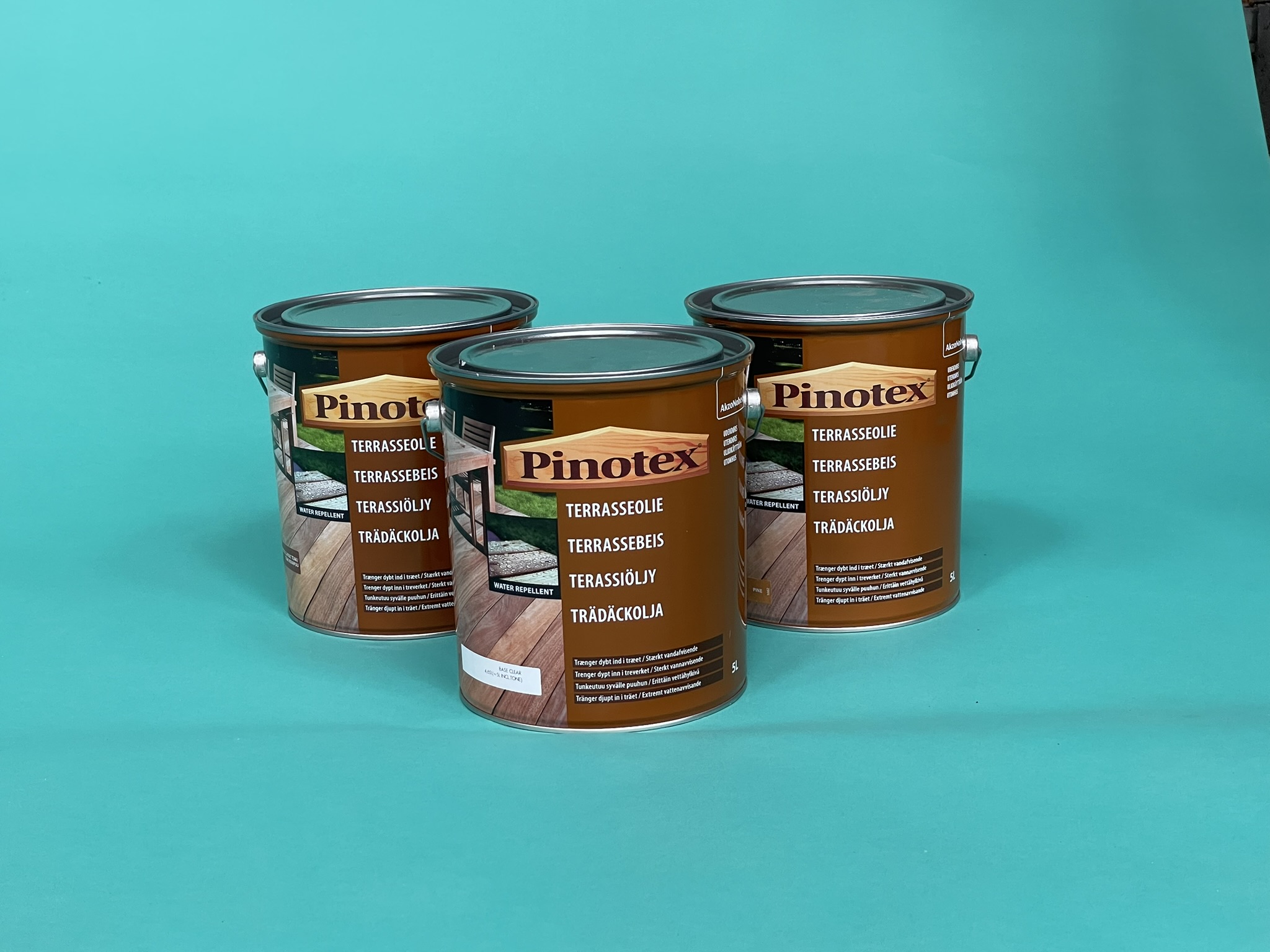 Pinotex Terrasseolie er træbeskyttelse til træterrassen, og den kan bruges til alle træsorter. Den giver en vandafvisende overflade og forhindre fugt i at trænge ind i træet. Samtidig beskytter den mod solens UV stråler. Du kan vælge tre farvenuancer for denne olie, gennemsigtig, pinefarvet teakfarvet.